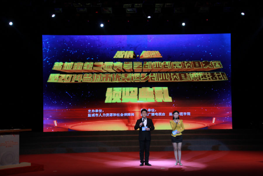 1月15日下午,由市人社局主办的盐城市第二届大学生创业创意项目大赛暨2014盐城市优秀返乡创业项目评选活动颁奖典礼举行。市委常委、常务副市长戴元湖,市人大常委会副主任曹友琥,市政协副主席李长见出席。